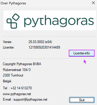 1. Ga in het menu naar Help > Over Pythagoras: klik op Licentie-info